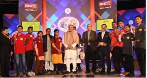 रायपुर, 24 दिसम्बर 2021/मुख्यमंत्री श्री भूपेश बघेल आज देर शाम समाचार चौनल आईबीसी-24 द्वारा राजधानी रायपुर के एनएच गोयल वर्ल्ड स्कूल में आयोजित नवा छत्तीसगढ़ क्विज कॉन्टेस्ट 2021 के फाइनल राउंड में शामिल हुए। उन्होंने इस अवसर पर कहा कि प्रगति के लिए व्यक्ति का सवाल पूछना जरूरी। उन्होंने कहा कि पिछड़ने का सबसे बड़ा सबब यही है कि हम सवाल नहीं पूछते। मुख्यमंत्री ने बच्चों से कहा कि मन में प्रश्न है तो शिक्षक से अवश्य पूछिये। बच्चों को उनके प्रश्नों के उत्तर मिलने चाहिए। मुख्यमंत्री ने इस अवसर पर क्विज कॉन्टेस्ट के विजेता धमतरी, उप-विजेता कांकेर के साथ ही बलौदाबाजार और कोण्डागांव की टीमों को भी मेडल, प्रशस्ति पत्र के साथ प्रथम, द्वितीय और तृतीय स्थान प्राप्त करने वाली टीमों को 51, 31 और 21 हजार रूपए की राशि का चेक प्रदान कर पुरस्कृत किया।