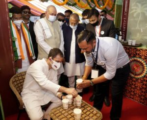 रायपुर, 03 फरवरी 2022/सांसद श्री राहुल गांधी आज अपने छत्तीसगढ़ प्रवास के दौरान राजधानी रायपुर के साईंस कॉलेज में लगाए गए बस्तर कॉफी के स्टॉल पर पहुंचकर कॉफी का स्वाद लिया। इस अवसर पर मुख्यमंत्री श्री भूपेश बघेल भी उनके साथ थे। श्री राहुल गांधी ने बस्तर में हो रहे कॉफी उत्पादन के नवाचार और उसके स्वाद की प्रशंसा की। उन्होंने मुख्यमंत्री श्री बघेल को अंतरराष्ट्रीय कॉफी ब्रांड्स (बड़ी कंपनियों) के साथ बस्तरिया कॉफी का एमओयू करने का सुझाव भी दिया।