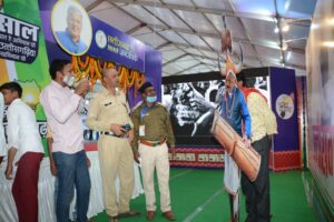 रायपुर, 04 फरवरी 2022/छत्तीसगढ़ मॉडल की परिकल्पना को गढ़ते हुए राज्य सरकार द्वारा विगत 3 वर्षों में किए गए जनकल्याणकारी कार्यों की उपलब्धियों पर आधारित आकर्षक प्रदर्शनी लोगों को काफी लुभा रही है। इसके अलावा कला-जत्था दल द्वारा शासन की योजनाओं को कला के माध्यम से जन-जन तक पहुंचाया जा रहा है। यह प्रदर्शनी जनसंपर्क विभाग द्वारा राजधानी रायपुर के साइंस कॉलेज मैदान में आयोजित की गई है।