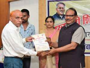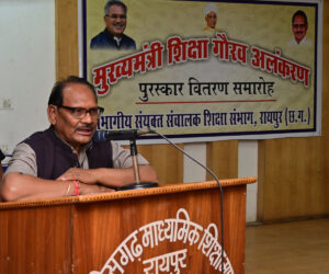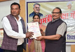 रायपुर/ मुख्यमंत्री की घोषणा अनुसार प्रतिवर्ष विकासखण्ड, जिला और संभाग स्तर पर मुख्यमंत्री गौरव अंलकरण योजना के अंतर्गत शिक्षकों को पुरस्कृत किया जाता है। स्कूल शिक्षा मंत्री डाॅ. प्रेमसाय सिंह टेकाम ने आज माध्यमिक शिक्षा मण्डल परिसर स्थित संयुक्त संचालक स्कूल शिक्षा कार्यालय के सभागार में मुख्यमंत्री शिक्षा गौरव अलंकरण योजना के अंतर्गत रायपुर संभाग के 31 शिक्षकों को सम्मानित किया। इनमें शिक्षा दूत सम्मान से 12 शिक्षक, ज्ञानदीप से 03 शिक्षक, शिक्षा श्री से 03 व्याख्याता, उत्कृष्ट प्राचार्य 05 और 08 उत्कृष्ट प्राधान पाठक सम्मानित हुए। यह सम्मान शिक्षा के क्षेत्र में श्रेष्ठ कार्य करने वाले शिक्षकों को बच्चों के अध्ययन-अध्यापन के साथ कौशल विकास, बौद्धिक, शारीरिक एवं सामाजिक दायित्वों के प्रति उत्तरदायित्व के लिए प्रेरणादायक कार्य करने के लिए प्रदान किया जाता है।