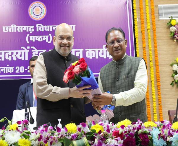 केन्द्रीय गृह एवं सहकारिता मंत्री श्री अमित शाह ने आज छत्तीसगढ़ के रायपुर में राज्य के नवनिर्वाचित विधानसभा सदस्यों के प्रबोधन कार्यक्रम को संबोधित किया