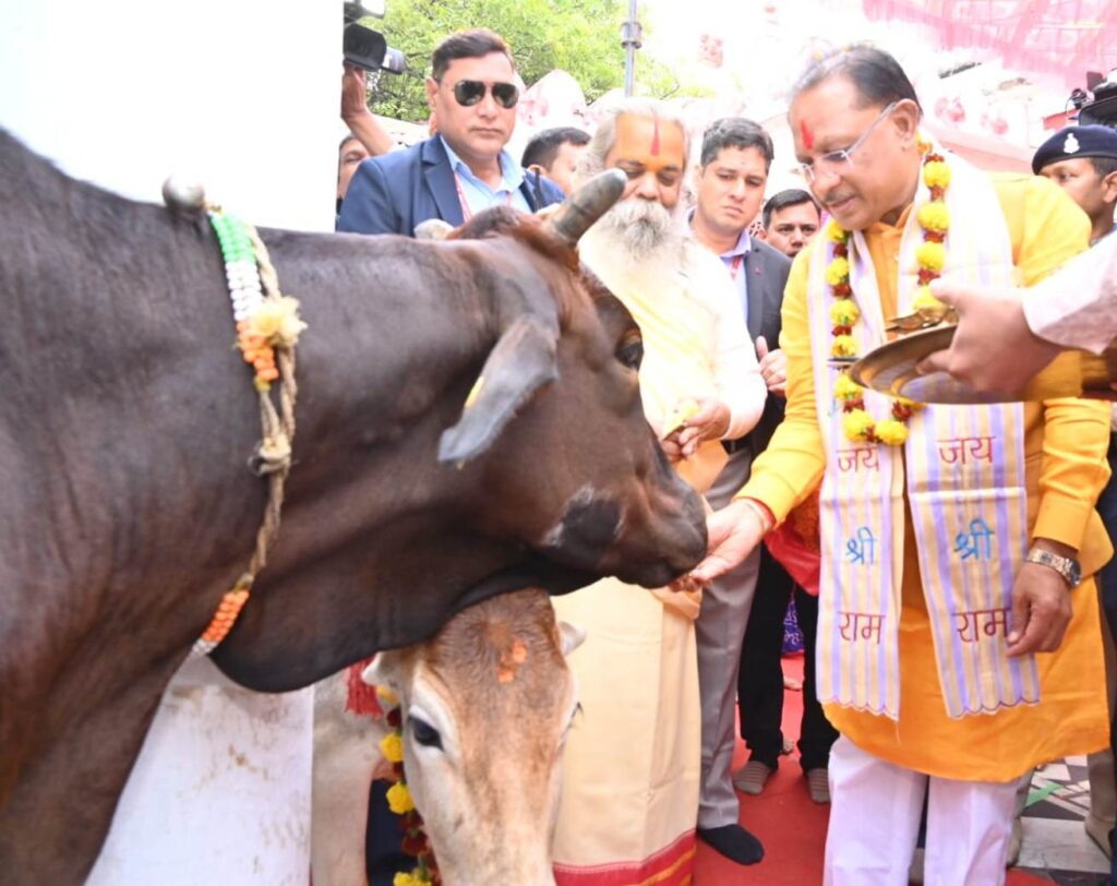 रायपुर, 22 जनवरी 2024/ अयोध्या में हो रही श्री रामलला की प्राण-प्रतिष्ठा के अवसर पर मुख्यमंत्री श्री विष्णुदेव साय ने आज सवेरे राजधानी रायपुर स्थित दूधाधारी मठ पहुंचकर राम-दरबार का दर्शन किया। उन्होंने गौ माता की भी पूजा-अर्चना कर उन्हें भोग लगाया।