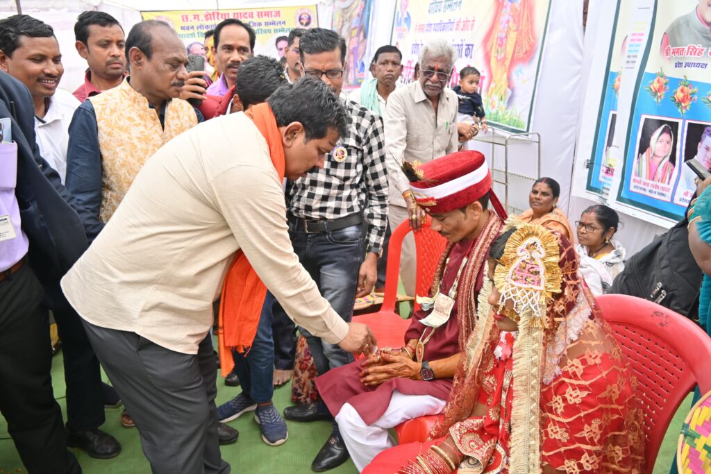 रायपुर, 28 जनवरी 2024/ उप मुख्यमंत्री श्री विजय शर्मा आज झेरिया यादव समाज द्वारा राजधानी रायपुर के महादेवघाट में आयोजित सामाजिक और युवक-युवती परिचय सम्मेलन में मुख्य अतिथि के रूप में शामिल हुए। कार्यक्रम में राज्य स्तर के विभिन्न जिलों से आए हुए यादव समाज के प्रतिनिधि शामिल हुए। कार्यक्रम को सम्बोधित करते हुए उपमुख्यमंत्री श्री शर्मा ने परिचय सम्मेलन में शामिल होने आये युवक-युवतियों एवं उनके परिजनों को बधाई एवं शुभकामनाएं दी। उन्होंने कहा कि यह समाज की अच्छी पहल है, जिससे एक ही मंच पर विवाह योग्य युवक-युवतियां आपस में मिल जाते है, इससे वर-वधु ढूढंने में समय और धन की बचत होती है। उन्होंने आठ नवविवाहित जोड़ों को बधाई देकर उनके खुशहाल दांपत्य जीवन के लिए शुभकामनाएं दी। उन्होंने कहा कि यादव समाज भारत के विकास में अपनी बराबर की भागीदारी दे रहा है व भारत के स्वाभिमान, मान-सम्मान के लिए हमेशा खड़ा रहता है।