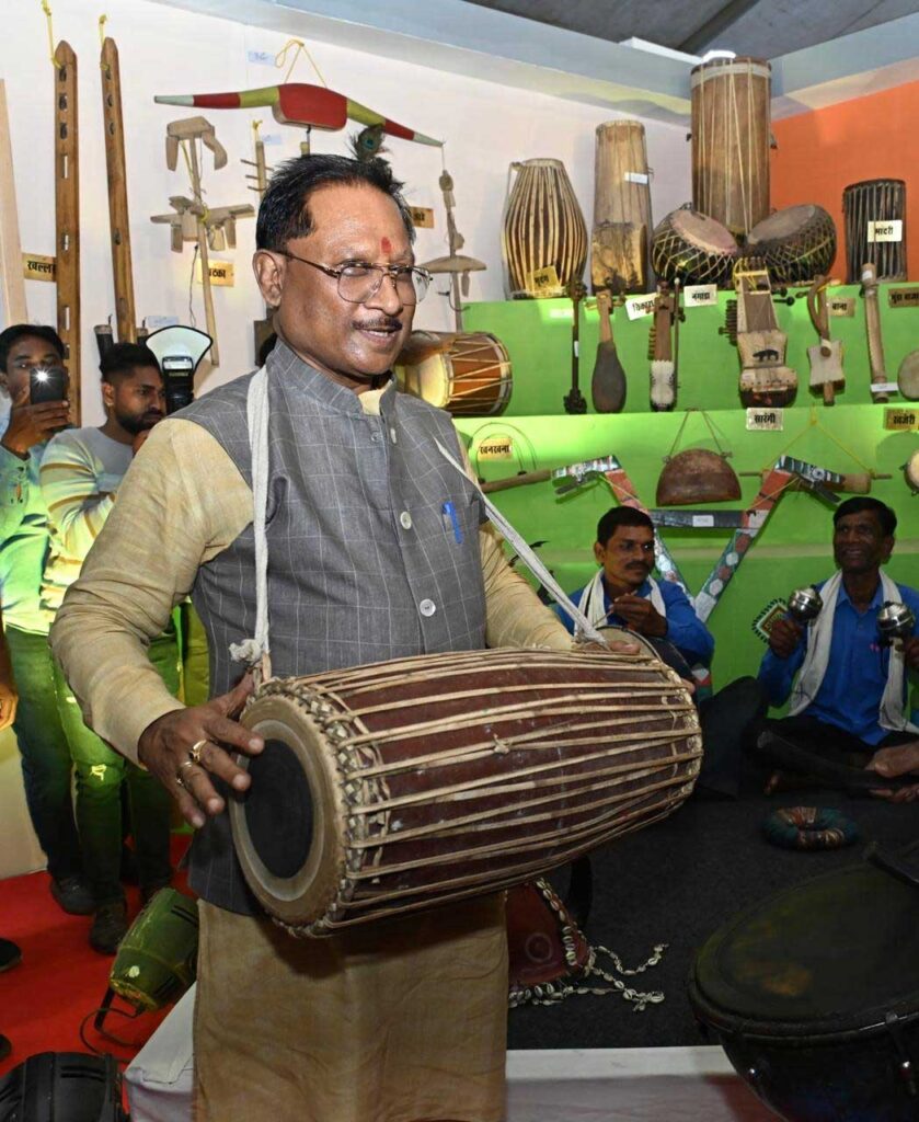 मांदर बजाते हुए कलाकारों के साथ थिरके मुख्यमंत्री श्री साय
